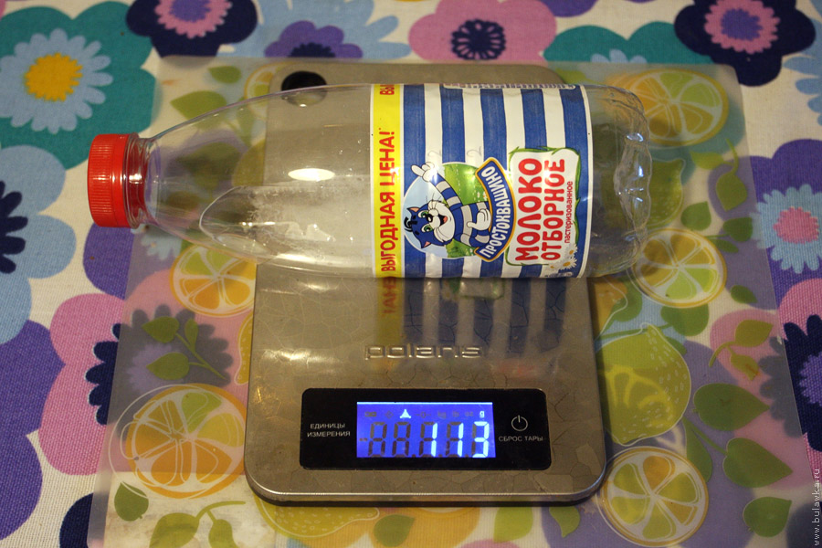 Затем я вылил из бутылок натаявшую воду и взвесил их с оставшимся (нерастаявшим) льдом.