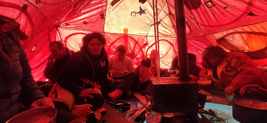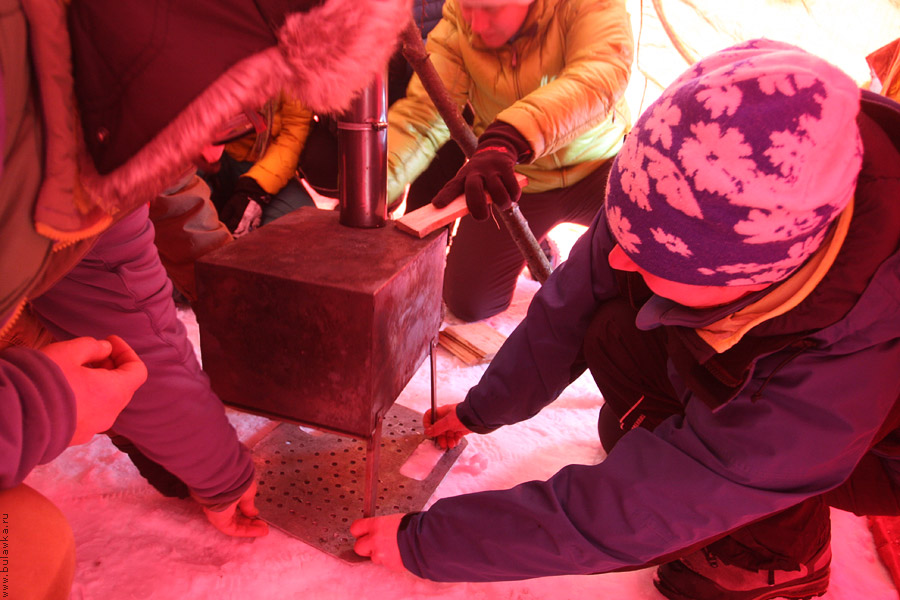 В походе по Байкалу на коньках мы планировали ночевать в шатре с печкой.